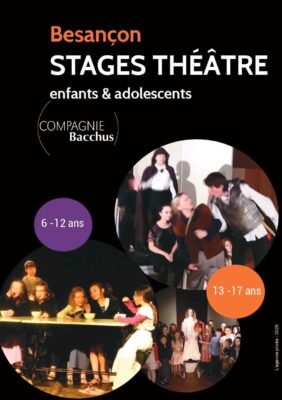 A la fois moment de plaisir et d’apprentissage, les stages de théâtre animés par des comédiens professionnels de la Compagnie Bacchus permettent de découvrir cet univers particulier et de perfectionner certaines techniques aux éléments d’une représentation .