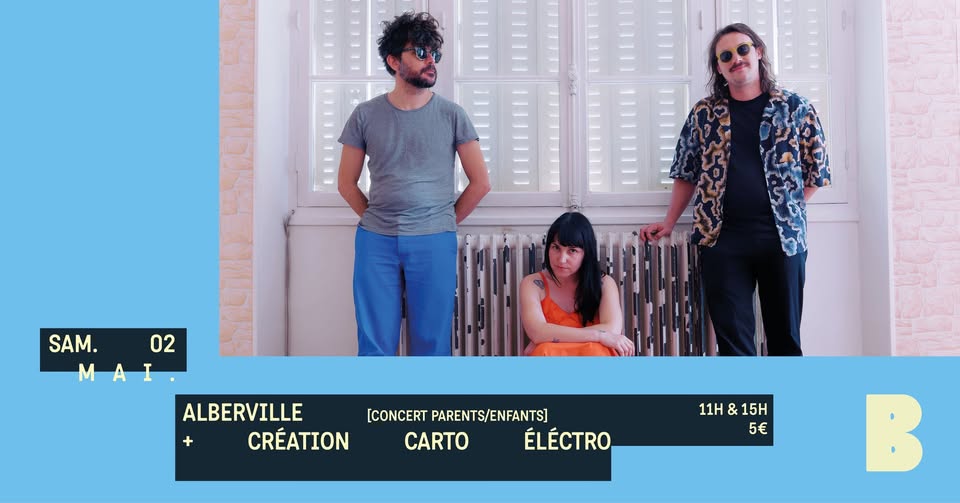 Sur scène, le groupe Alberville déploie une pop électronique sensible et immersive, entre boîtes à rythmes, synthétiseurs et voix enveloppante. Une musique à la fois douce et mouvante, qui invite à se laisser porter, petit·es et grand·es, dans des paysages sonores inattendus.