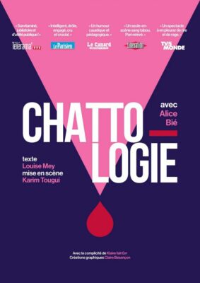 Chattologie est un spectacle ouvert à toustes. On y parle de règles, flux, et tampons. Et de ce qui s’y cache de très drôle et de pas drôle du tout.