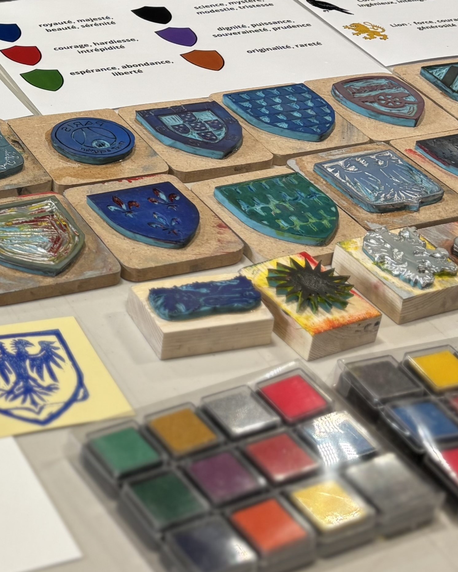Pourquoi tant d’œuvres du musée sont-elles accompagnées de blasons ? Et quel est le lien avec le logo de ton club préféré, le symbole d’une marque de voiture ou encore de Poudlard ? Après une visite pour décrypter ces symboles anciens, place à la création : En atelier, avec tampons et papiers colorés, invente ton propre blason !