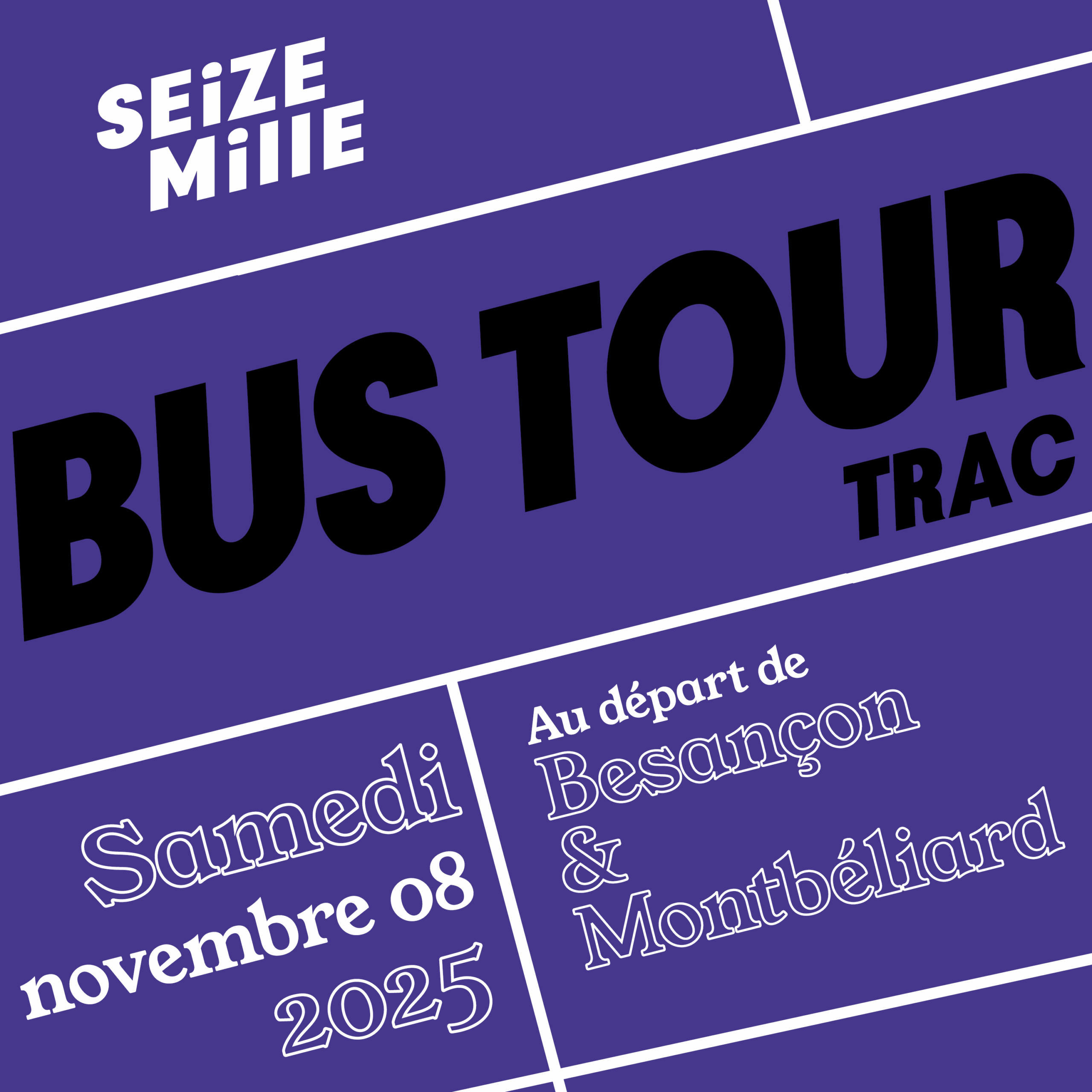 Seize Mille et le TRAC* vous proposent une journée de découverte de l’art contemporain entre Belfort et Montbéliard. Le temps d’un parcours en bus, explorez plusieurs lieux dédiés à la création actuelle. Chaque arrêt est l’occasion de visiter une exposition, accompagné·e par des professionnel·les de l’art.