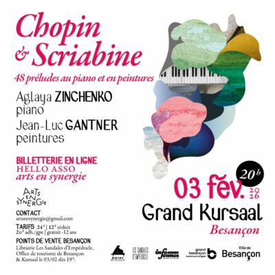 Aglaya Zinchenko pianiste et Jean-Luc Gantner peintre et photographe se joignent pour présenter au public dans un récital « au piano et en peintures » les 24 préludes de Chopin et les 24 préludes de Scriabine. Les tableaux seront projetés en vidéo sur un écran durant le concert.
