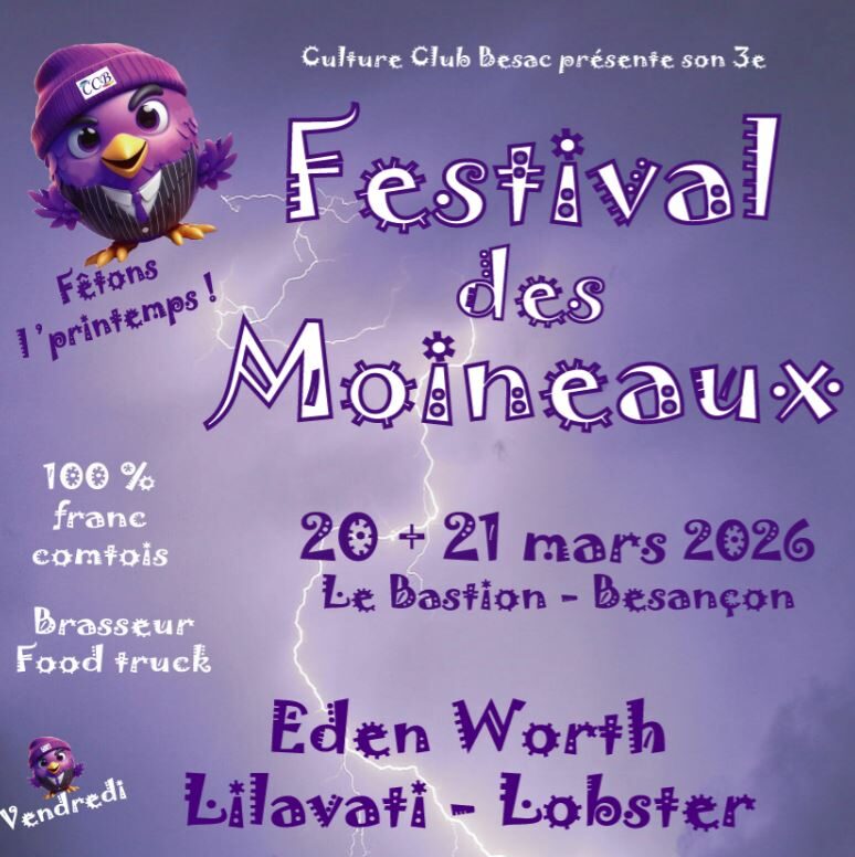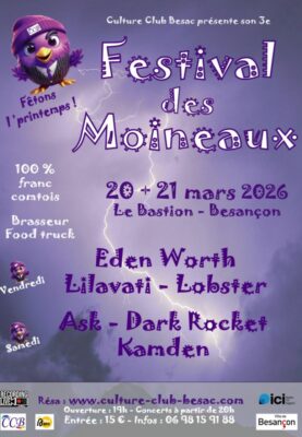 Le Festival des Moineaux revient pour sa 3ème édition au Bastion de Besançon, avec une programmation toujours 100% franc-comtoise. Eden Worth, Lilavati et Lobster le vendredi