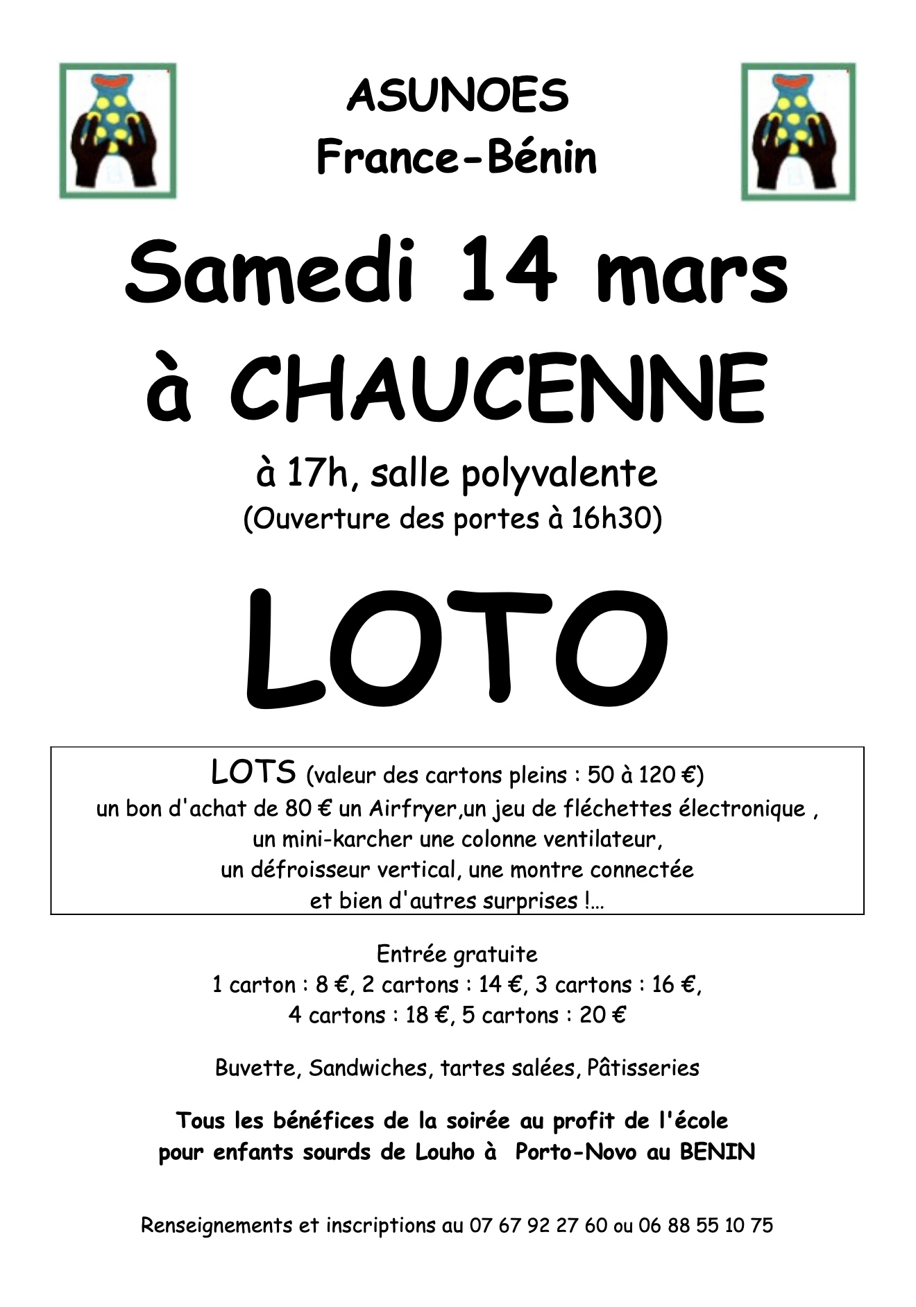 Tous les bénéfices de la soirée seront reversés au profit du CAEIS de Louho (école pour enfants sourds à Porto-Novo-BENIN)