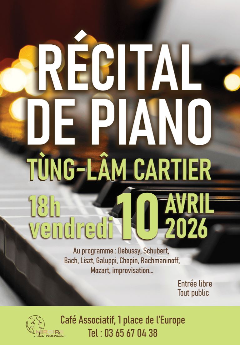 Venez écouter le jeune pianiste Tung-Lâm Cartier au Café Associatif de Miroirs du Monde pour un large répertoire de 11 morceaux.