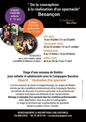 Un stage de théâtre organisé par la Compagnie Bacchus, de la Conception à la réalisation d’un spectacle.