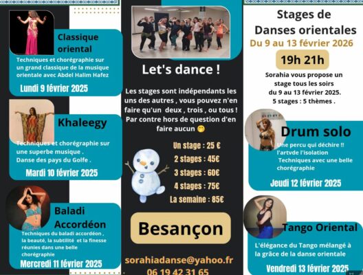 Une semaine de stages de danse orientale à Besançon, le soir sur un thème différent.
