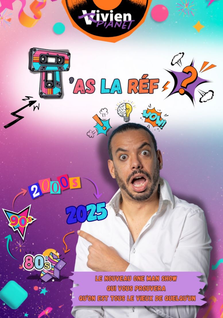 Vivien PIANET remonte le temps et nous embarque dans un voyage plein d’humour à travers les décennies, des années 80 jusqu’à 2025.