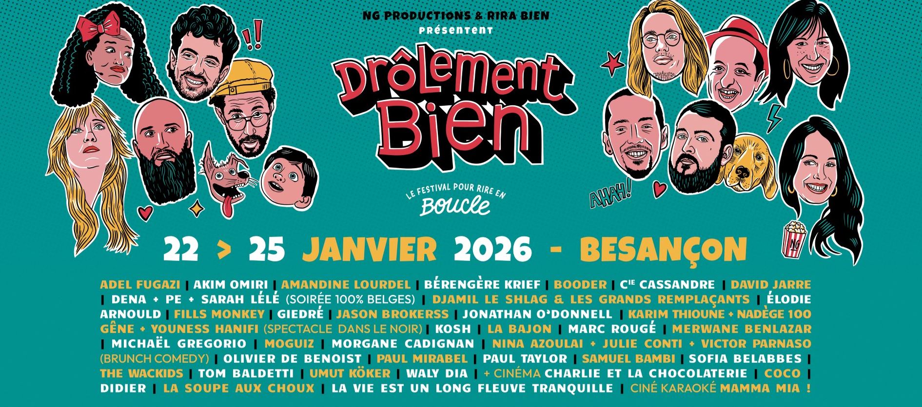 1 décembre 2025La 4e édition du 1er festival de l’humour en France (18 000 spectateurs en 2025) Drôlement Bien revient du 22 au 25 janvier. Le festival fait de Besançon un terrain de rire et de jeu géant, pour quatre jours de fête à foison ! 45 artistes, 30 spectacles et une programmation qui fai...