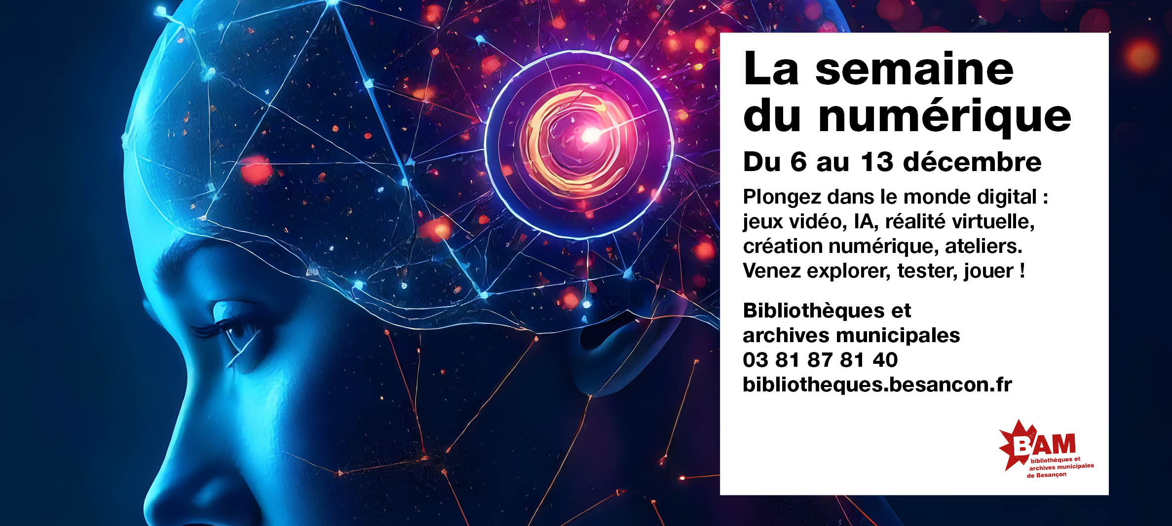 1 décembre 2025Du 6 au 13 décembre, les bibliothèques et archives municipales de Besançon organisent la Semaine du Numérique, un événement gratuit et ouvert à tous pour découvrir les multiples facettes du monde digital. Au fil de cette programmation, petits et grands sont invités à explorer jeux vid...
