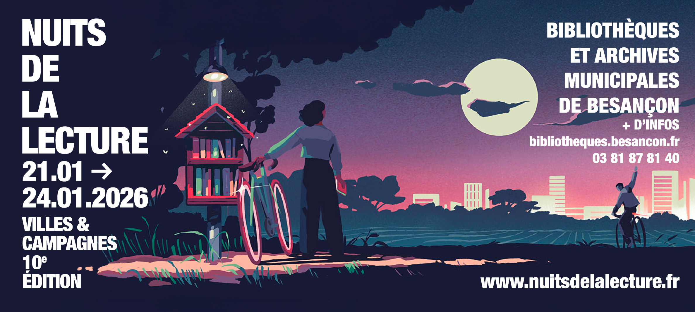 21 janvier 2026À l’occasion de la 10ᵉ édition des Nuits de la lecture, les bibliothèques municipales de Besançon invitent le public à célébrer la lecture sous toutes ses formes du mercredi 21 au samedi 24 janvier. Pendant quatre jours, elles ouvriront leurs portes toute la journée et jusque dans la...
